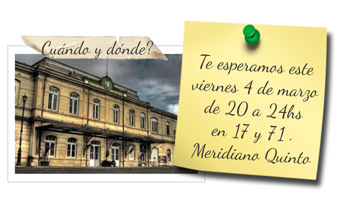 Te esperamos este viernes 4 de marzo de 20 a 24 hs. en 17 y 71 (Meridiano Quinto). La Plata – Buenos Aires